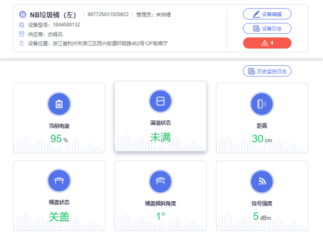 | • 风向、空气质量、温湿度等监控 | • 满溢告警 • 垃圾桶监测管理 |